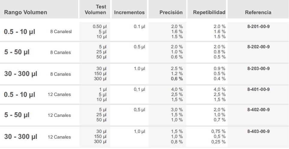 Micropipeta Manual Multicanal Volumen Variable