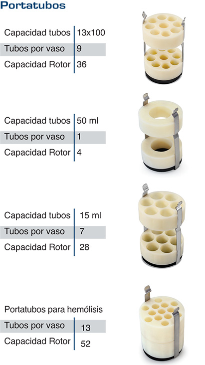Los rotores de SOLBAT hacen de la C-40 la centrífuga más versátil en su tipo; se convierte de una centrífuga con rotor oscilante de 4 plazas de distintos volúmenes y cavidades a una veloz micro-centrífuga.