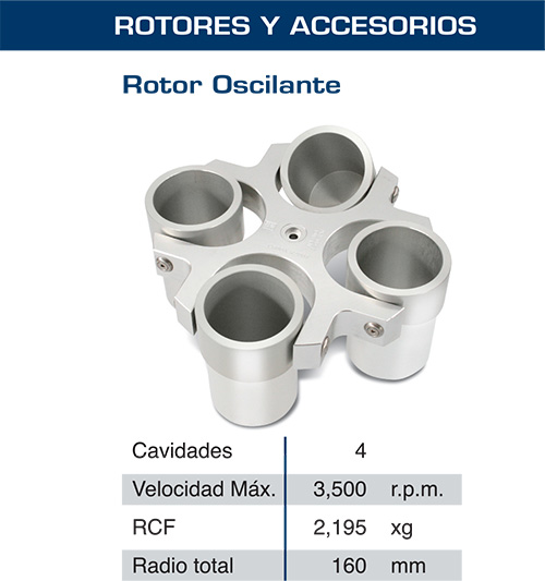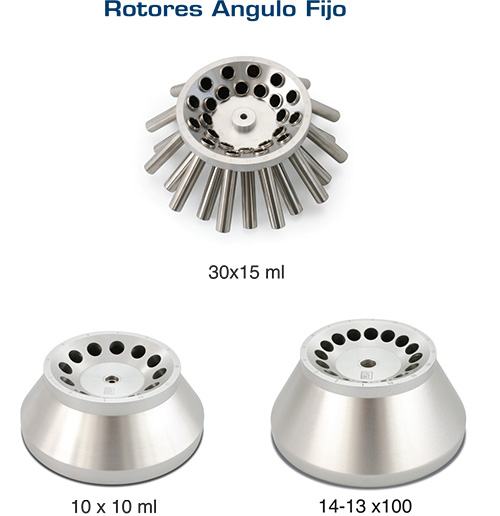 También centrifuga altos volúmenes de rotores angulares llegando hasta 14000 rpm.